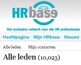 HRbase, het online netwerk voor HR-professionals, gaat lekker. Op de site hebben inmiddels meer dan 10.000 mensen zich als lid aangemeld. Uitgaande van een aantal HR-mensen van ongeveer 70.000 in Nederland, dan bereikt HRbase daarvan nu dus 1 op 7. Niet slecht.