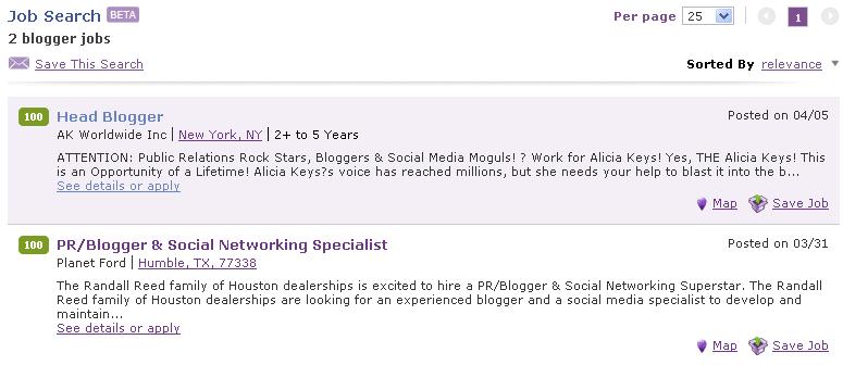 Interessant om te zien dat er op dit moment 2 blogger-functies beschikbaar zijn op Monster.com: