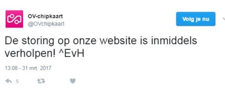 Update 3 april: We zijn een dag of drie verder en de storing duurt onverminderd voort. Er is daar iets goed mis. Ondertussen worden klanten met vragen doorverwezen de klantenservice te bellen. Dat is een betaald nummer. Het zou de organisatie achter de OV-chipkaart sieren dat nummer voor nu op zijn minst gratis te maken.