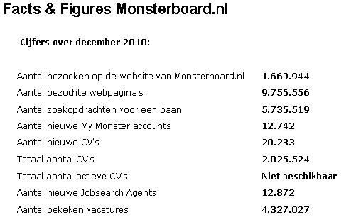Het blijft trouwens irritant dat vacaturesites niet heel open zijn over de traffic die ze hebben. Nationalevacaturebank.nl doet nog een aardige. De site publiceert tenminste nog de kwartaalcijfers. Monsterboard en Intermediair hebben jarenlang hun trafficcijfers wel gepubliceerd maar zijn er helaas mee gestopt.